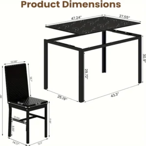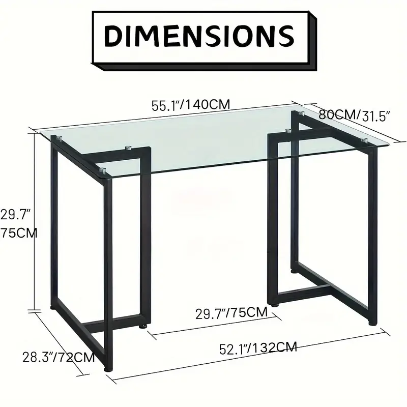 Upgrade your dining experience with the FurnitureR Tempered Glass Dining Table. Measuring 55 inches, this contemporary rectangular table comfortably seats 4-6 people, making it ideal for family meals or gatherings. The durable tempered glass tabletop is spacious and easy to clean, while the sleek black and aureate metal legs provide stability and an elegant touch. Perfect for kitchens, living rooms, or restaurants, it combines modern style with practicality. Designed for users aged 14 and above, this table requires assembly but offers a sturdy, timeless addition to your space.
