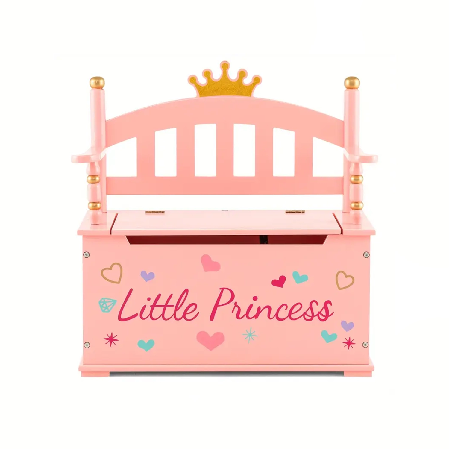 The GIANTEX Kids Toy Storage Organizer combines functionality and charm, serving as both a spacious toy chest and a bench for children ages 3-6. Crafted from durable MDF with a cork fiberboard design, it features a high backrest and safety hinge to protect little fingers. Adorned with a cute pink crown pattern, it’s perfect for a girls’ room, playroom, or nursery. With a storage capacity under 3.2 cubic feet, it neatly stores toys, books, and more, keeping spaces tidy and organized. Lightweight and easy to assemble, this 2-in-1 organizer is both safe and stylish.