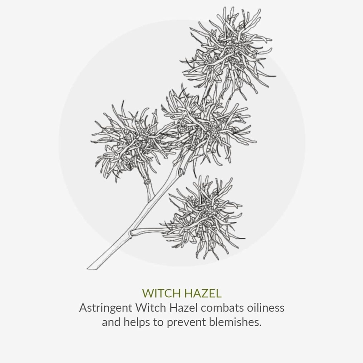 - TEA TREE, WILLOW BARK & WITCH HAZEL are our key anti-blemish actives. Tea Tree has strong anti-inflammatory properties, whilst Willow Bark is a rich source of non-irritating salicylic acid and astringent Witch Hazel combats oiliness.