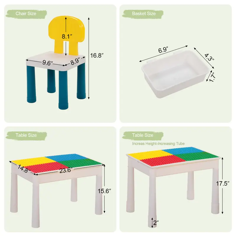 Crafted from durable, child-safe plastic in mixed colors, the table and chairs are lightweight, easy to clean, and built to last. The set’s 100 large blocks are ideal for small hands, ensuring safe play. Requiring no power source, this eco-friendly activity table can be set up anywhere, from the playroom to the backyard. It’s a great way to encourage social interaction and creativity while keeping children engaged in constructive play. Ideal for birthdays or holidays, this set provides hours of entertainment and learning.