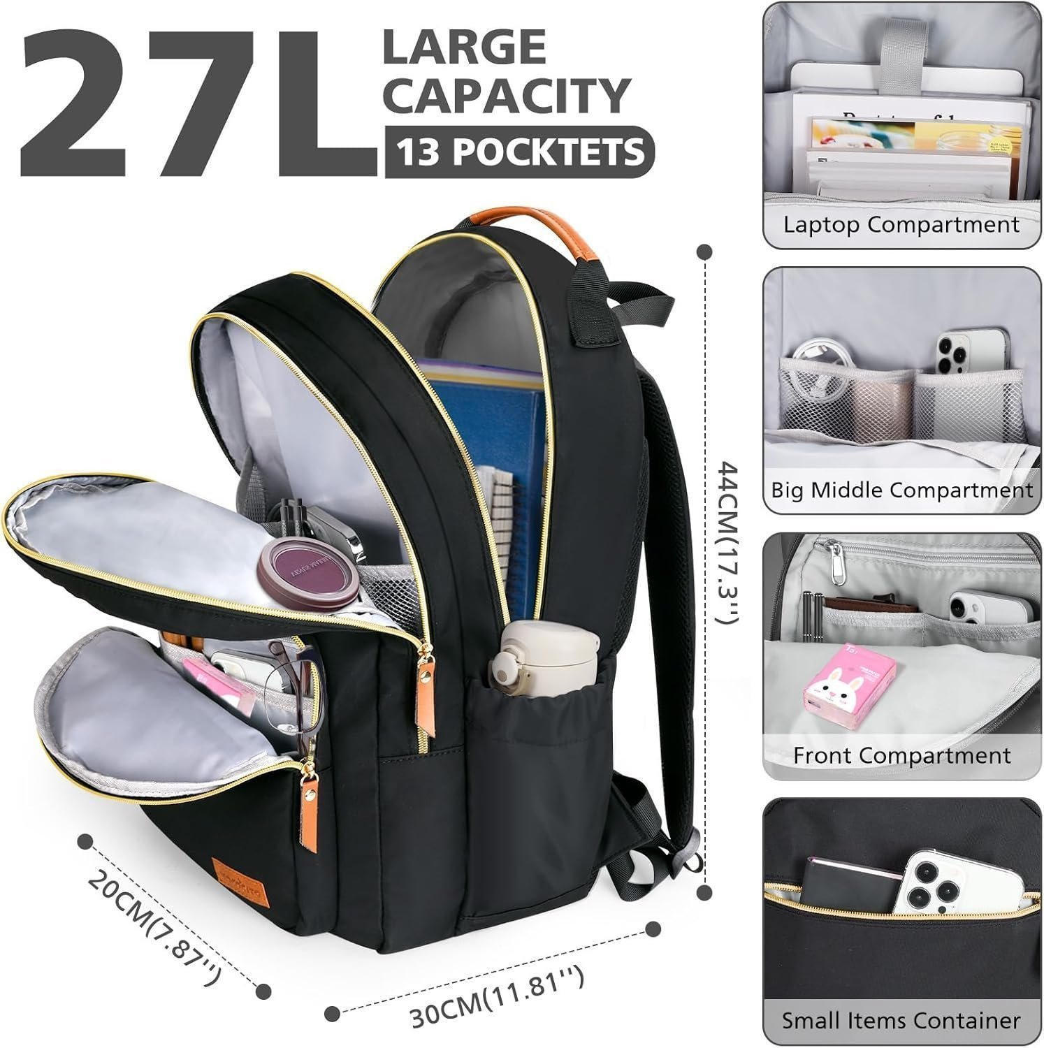 • LARGE CAPACITY: The backpack has a volume of 25-27L, which can hold a 15.6″ laptop, as well as books, tablets, daily necessities, clothes, etc. that you need to go out. The large capacity of backpack allows you to use this bag as a commuter bag, school bags , travel bag and more.