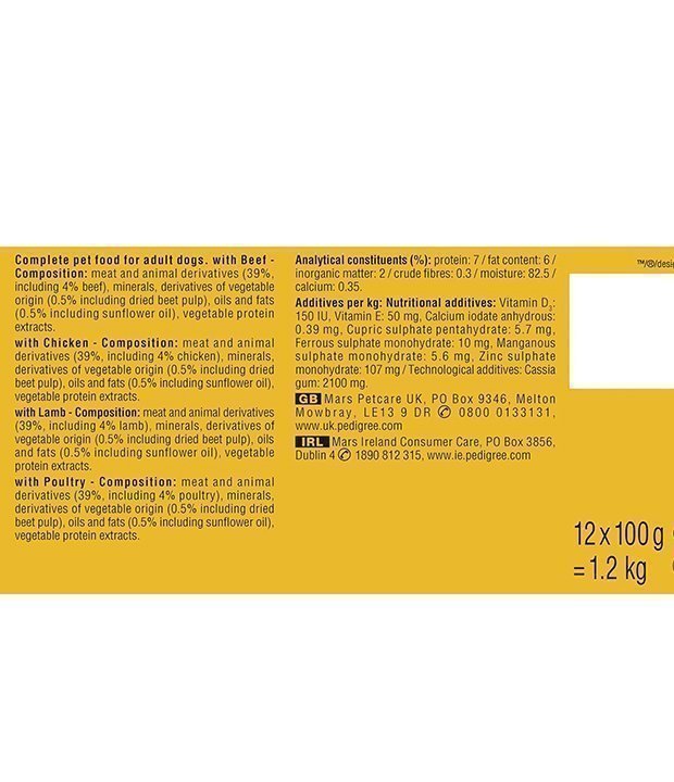 | Item form | PEDIGREE Dog Pouches Mixed Selection in Jelly 12x100g |