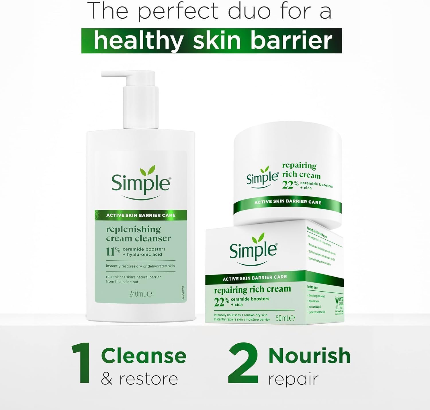 - Powered by 22% Ceramide Boosters, Simple Repairing Rich Face Cream repairs the skin barrier, leaving the skin instantly soft and supple