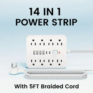 Surge Protector Power Strip With 8 AC Outlets, 4 USB & 2 Type-C Fast Charge Ports -Premium 5FT Braided Cable